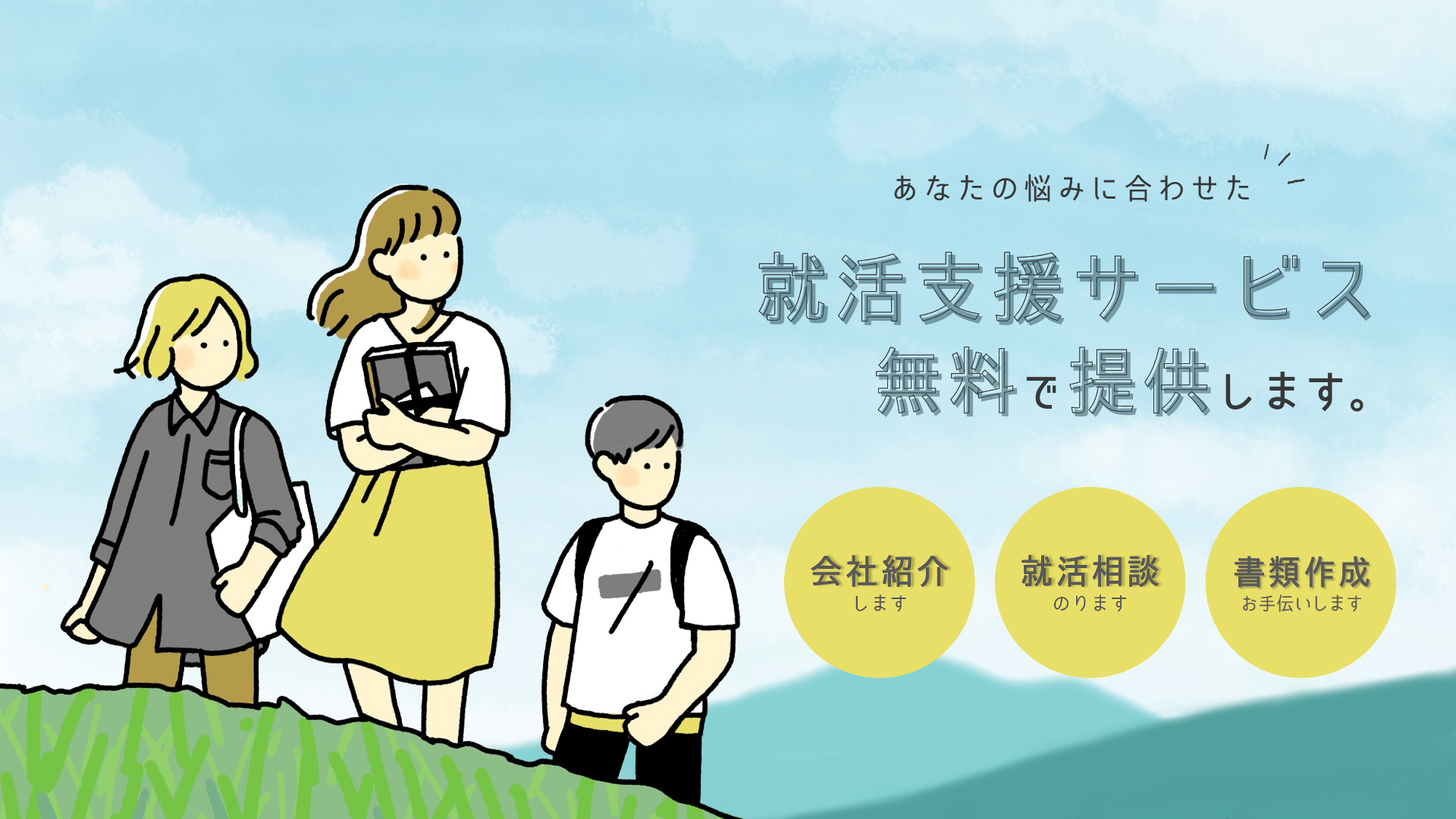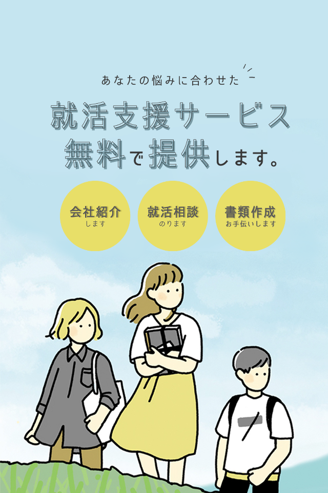 はじめての就職活動は、やり方や、仕事内容など、わからないことだらけですよね。ひとりひとり、わからないことは違うから、あなたの「わからない」「不安」を丁寧にサポートします。