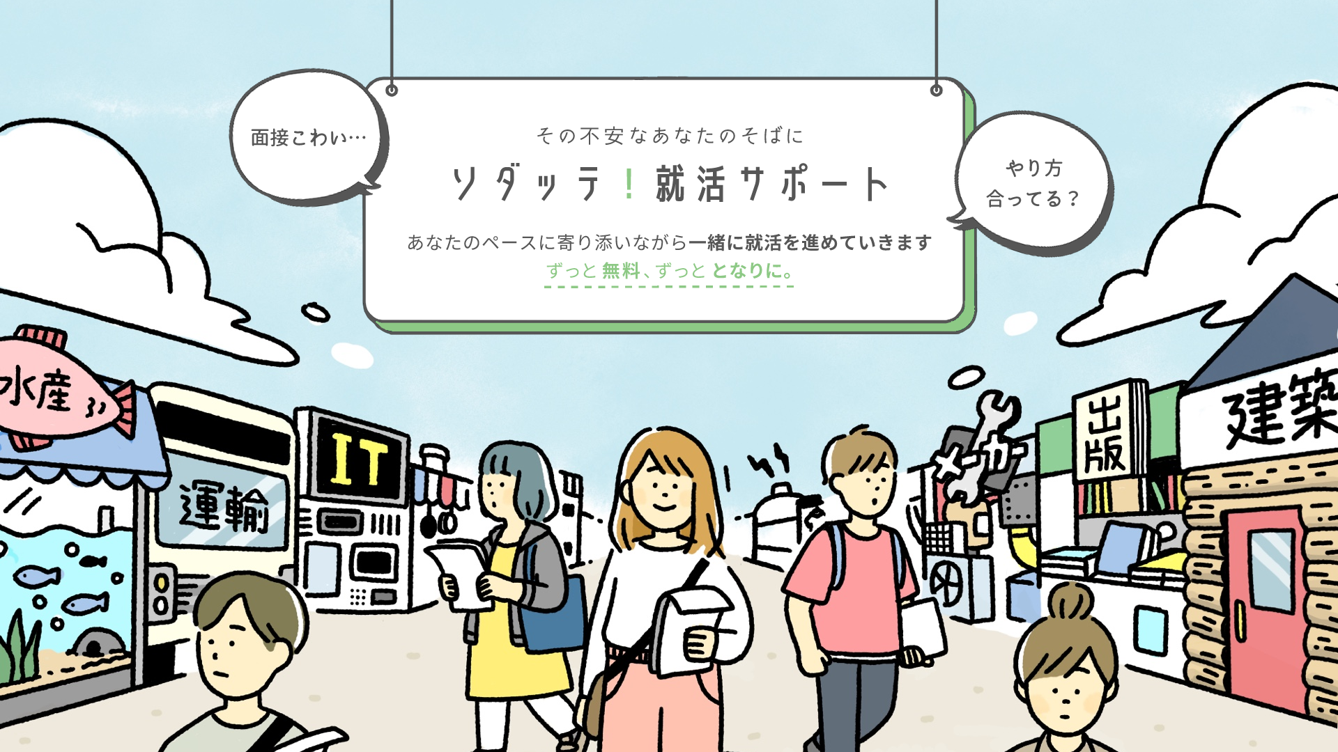 就活の「わからない」という不安や、誰にも言えなかった悩みを、話しやすい雰囲気で丁寧にサポートしてもらい、前向きに取り組めました。